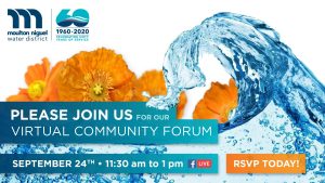 Moulton Niguel Water District invites the public to attend a virtual Community Forum on its District operations, customer service, and response to the COVID-19 global pandemic.