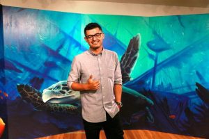 While painting, I learned something alarming about the subject matter: the ocean as we know it is quickly disappearing. Pollution, global warming, and climate change affect the health and populations of micro-species, which in turn endangers every other member of the food chain, including humans. My hope is that this mural reminds us of our friends swimming in the sea and helps to shift our behaviors.” — Levi Ponce