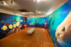 | From the exhibition overview: “The mural … aims to capture the variety of life in the Pacific Ocean and engulf guests in a sea of color and activity. Almost all of the creatures in the mural are painted at life-size for an immersive experience …