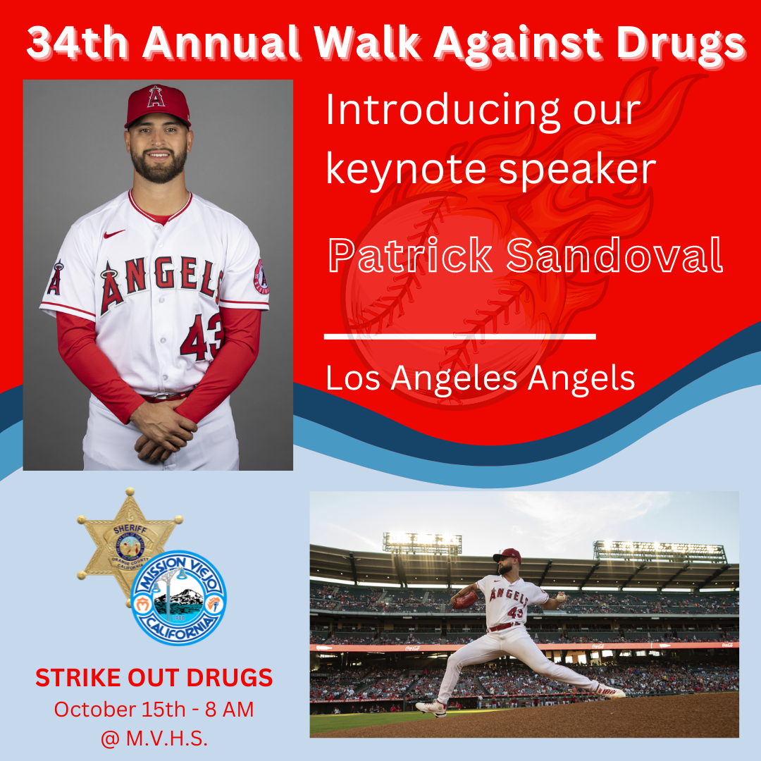 Los Angeles Angels’ pitcher Patrick Sandoval will serve as the keynote speaker for the 34th Annual Walk Against Drugs on Saturday, October 15 in Mission Viejo.