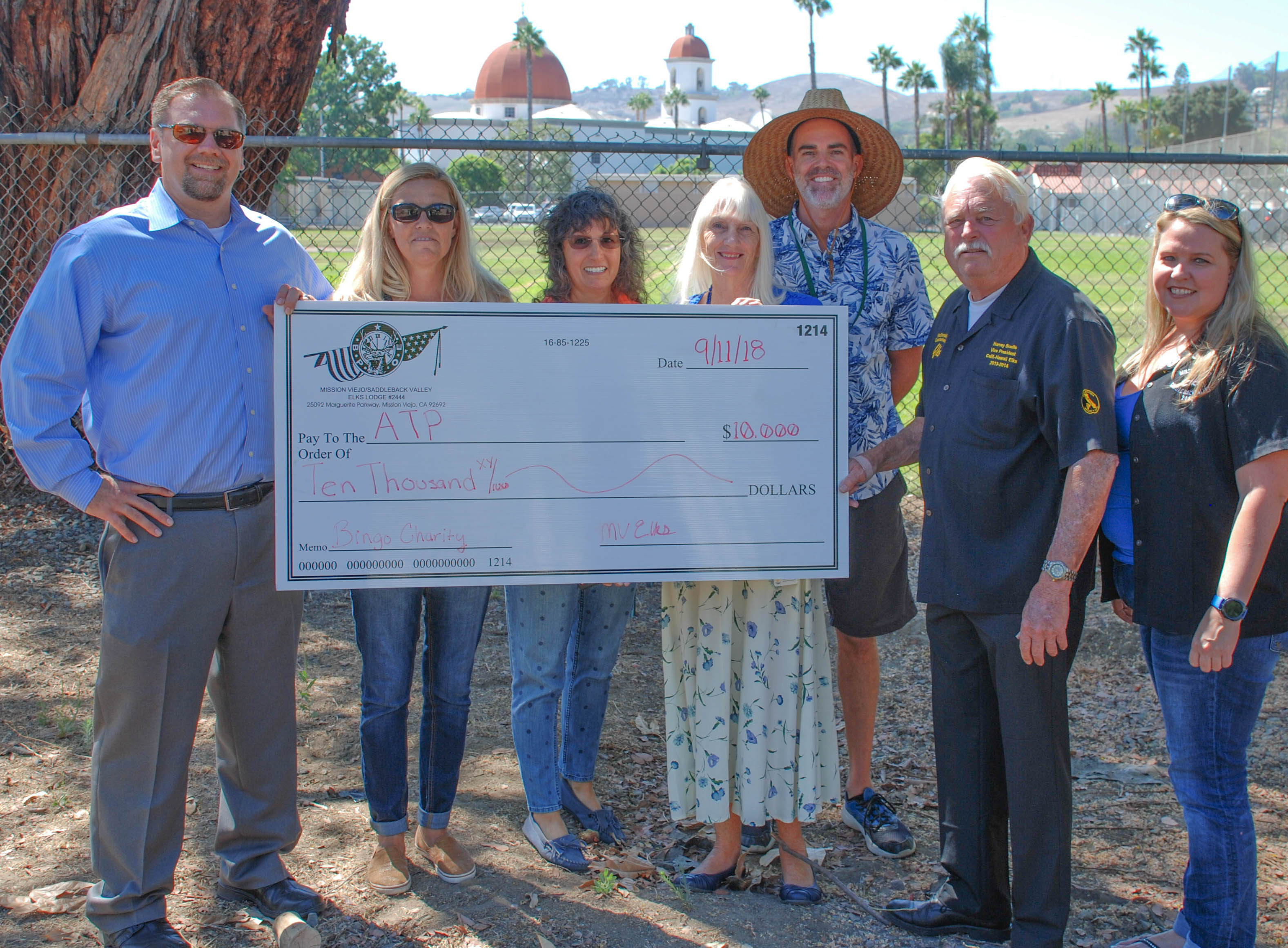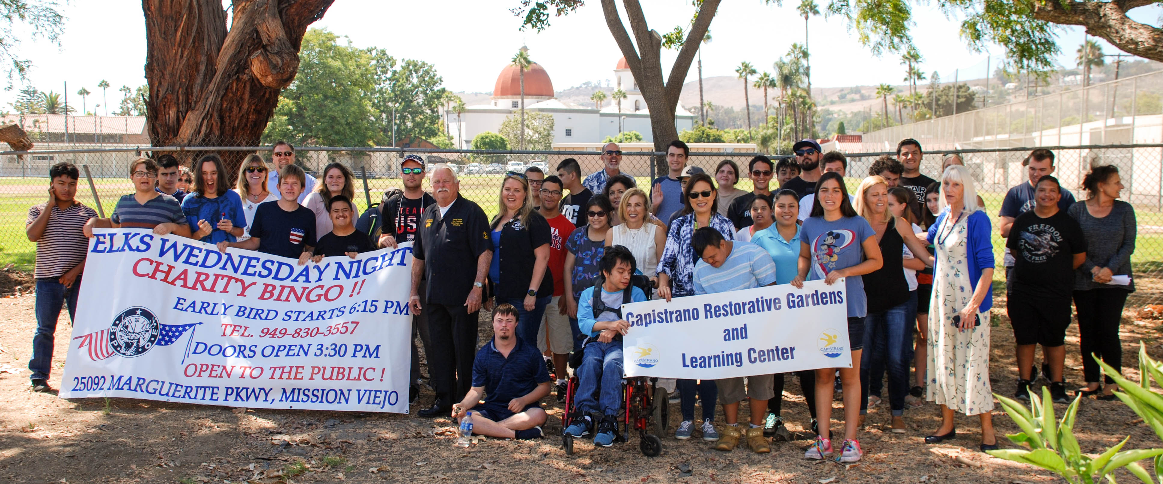 This week ground was broken for the Capistrano Restorative Gardens and Learning Center. The plans are to transform the land that is currently vacant and ineffectual into a Garden that the Adult Transition Program (ATP) for Capistrano Unified School District can utilize within many of their programs. Mission Viejo Saddleback Valley Elks Lodge member Greg Morgan, whose son is in the program, spearheaded the project. When Morgan heard of the plans and their needs, the Elks immediately approached ATP to help in any way that they could. That help was gratefully accepted, and a partnership has been formed. Financially, the Elks have started the Garden off with a donation. Harvey Boelts, the Elks Bingo Charity Chairman, presented ATP Principal, Clint Collins, with a check for $10,000.