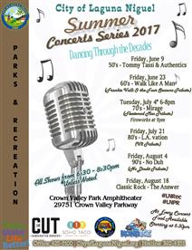 Our Dance Through the Decades continues with the 60’s as we enjoy music from Walk Like A Man! (A tribute to Frankie Valli & Music of a Golden Era) Food and dessert will be available for purchase from Soho Taco Gourmet Taco Catering, THE CUT, and Kona Ice. We offer a free shuttle service from City Hall to the park, running from 5:30-9:15pm.