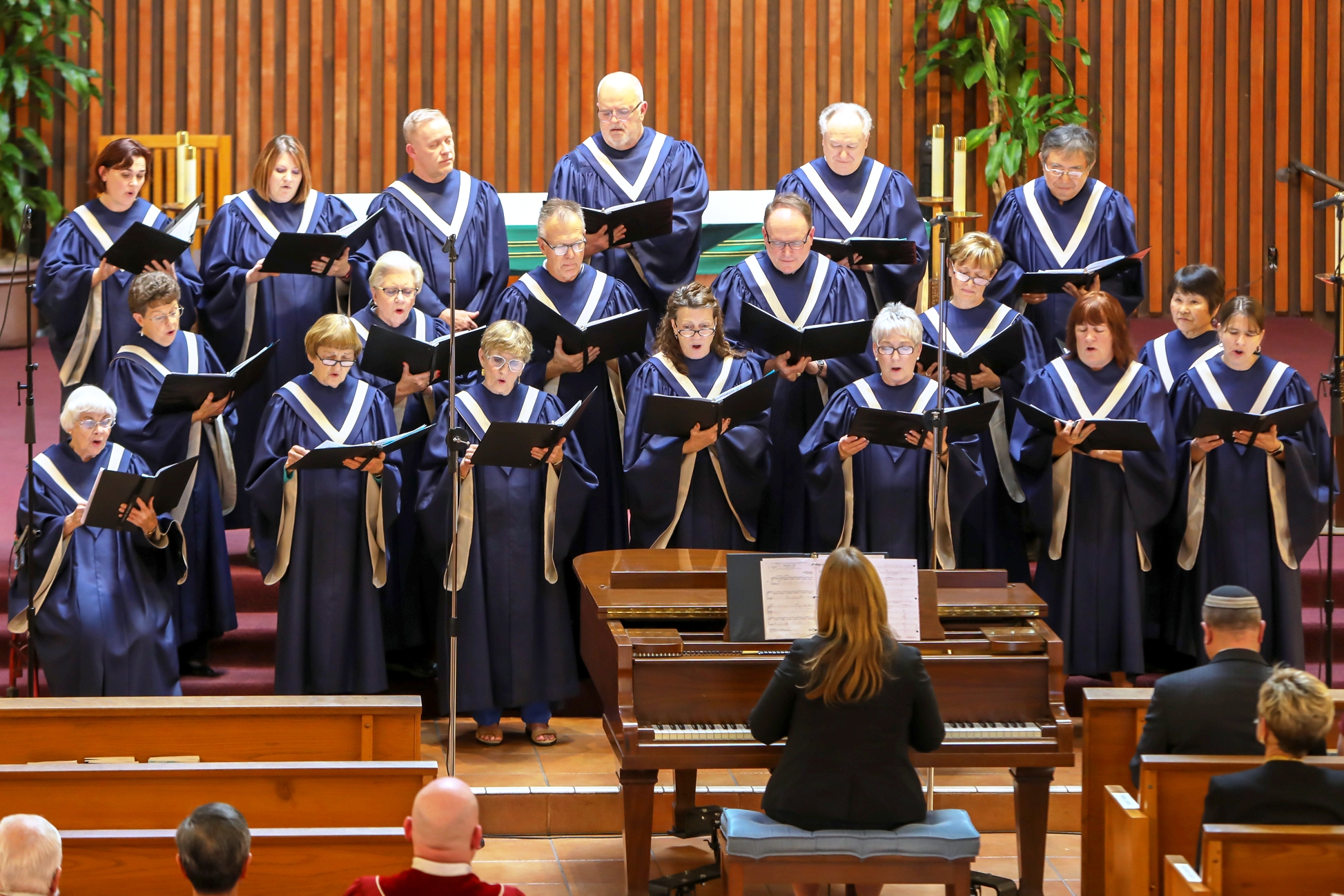 The Lutheran Church of the Cross Chancel Choir, directed and accompanied by Pauline Lamoureux, performed “We need You Lord” (Mary McDonald), a fervent musical prayer that sets the tone for a meaningful worship experience. The lyrics plea for God to be present in our midst and to change our lives through the power of the Holy Spirit. Next the choir sang “Psalm 23” (Heather Sorenson) The often-set Psalm has found new purpose in this shining setting. Each phrase of the celebrated scripture receives a special moment with the words being cradled in caring arms.