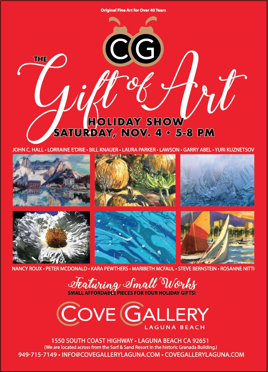 In addition, the Cove Gallery Artists will be serving complimentary Wine and Hors d’ oeuvres as you browse the walls of the Cove Gallery!