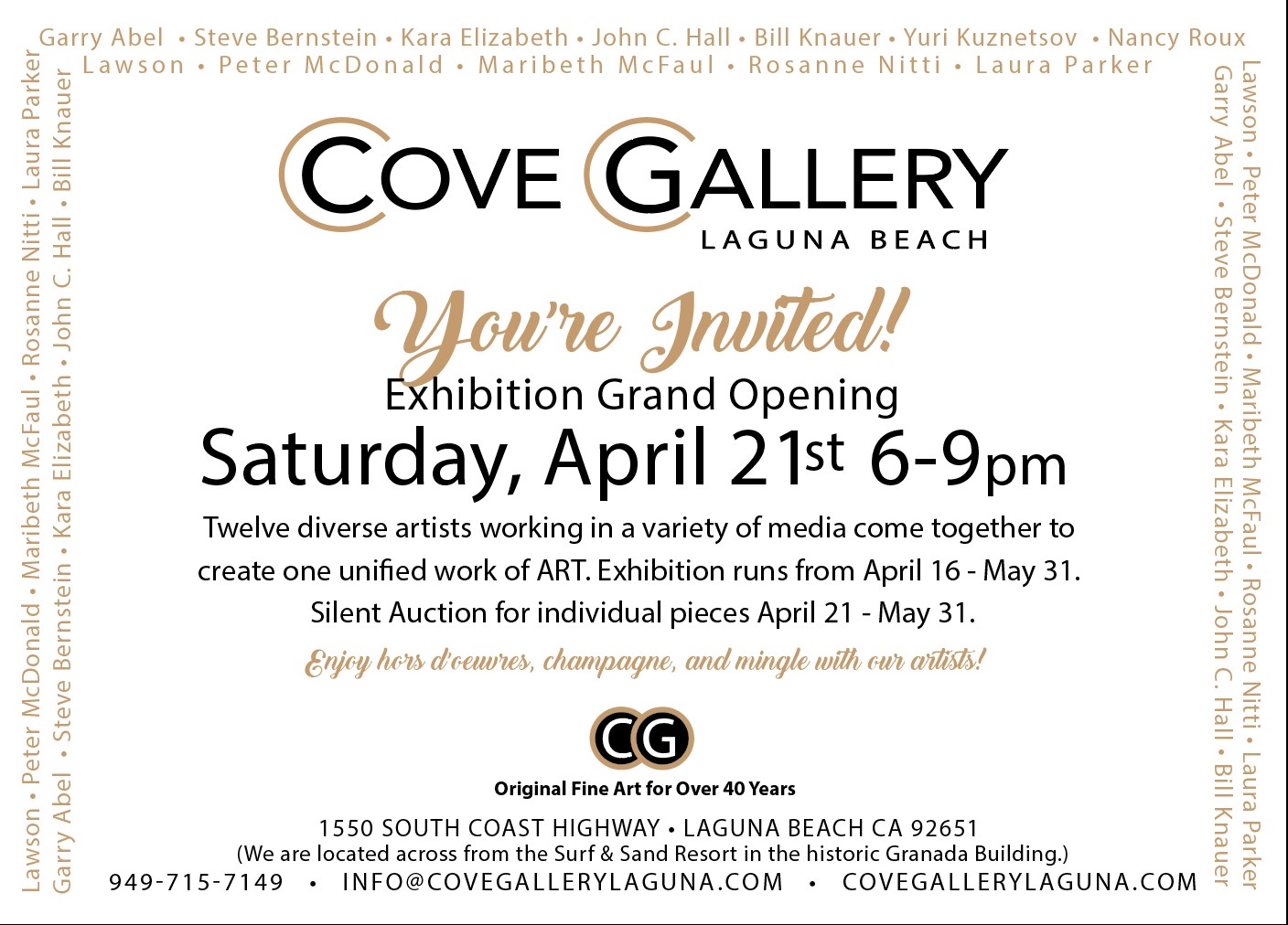 The Exhibition will consist of our Cove Gallery artists, working in a variety of mediums, coming together to create one unified work of ART. The artists will express their perspective on Unity through their own definition. The individual pieces will be offered for sale in a Silent Auction format that will end on the last day of the Exhibition, Thursday, May 31, 2018.