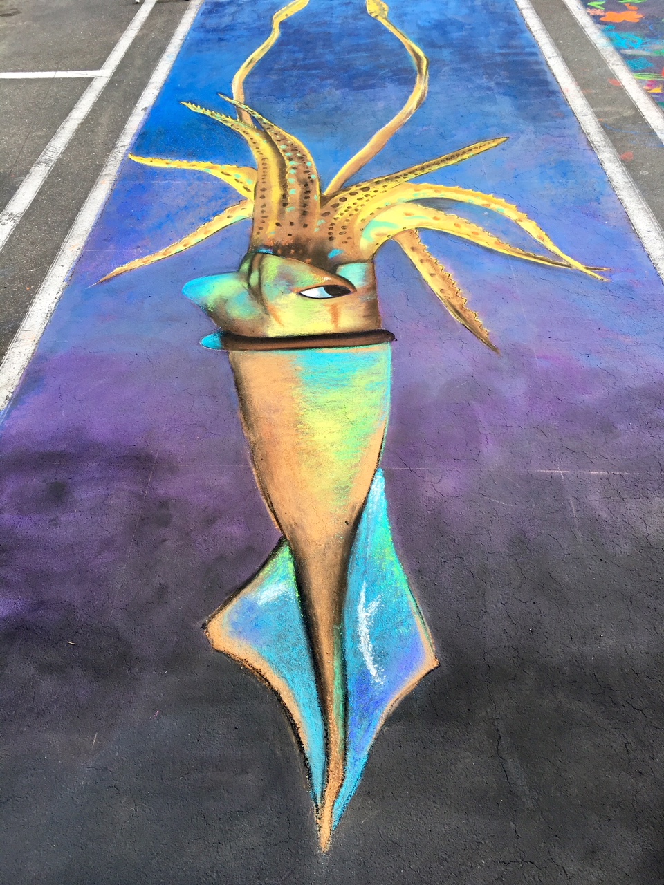 Street painting of the Giant Squid done at Ocean Institute’s Tall Ships event by Cove Gallery artist Maribeth McFaul