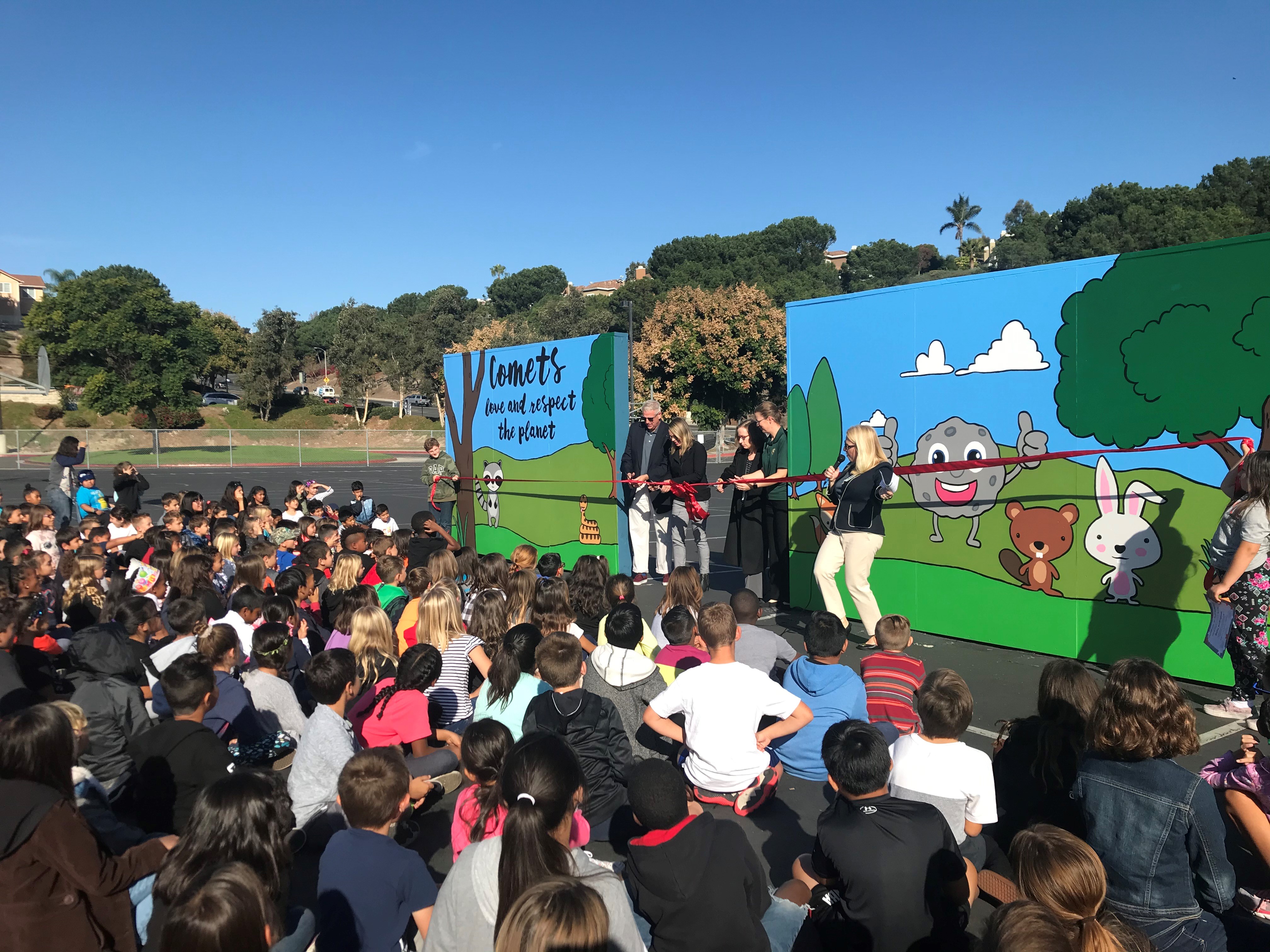 On Friday, Nov. 22, Cox Communications and Operation Clean Slate teamed up to host a mural dedication at Wood Canyon Elementary School in Aliso Viejo to encourage environmental stewardship. The mural is the fifth sponsored by Cox in Orange County this year and the first to have an environmental theme. Students in grades first through fifth painted the mural which was designed by Joneric Ahmundson.