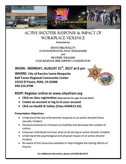 The Orange County Sheriff’s Department is offering a free training opportunity for Rancho Santa Margarita residents.