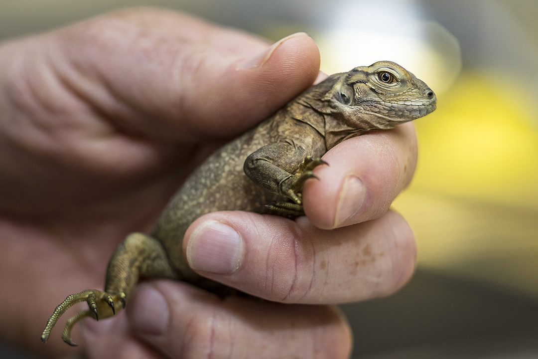 The population of critically endangered Jamaican iguanas is on the rise, thanks in part to the efforts of researchers at the San Diego Zoo Institute for Conservation Research’s Kenneth and Anne Griffin Reptile Conservation Center—an off-exhibit breeding facility at the San Diego Zoo Safari Park. Since September, four Jamaican iguanas have hatched here from eggs of two different pairs of adult iguanas. One egg from the first clutch hatched Sept. 4 and three eggs from the second clutch hatched Oct. 6, 7 and 11. With the addition of these four new animals, a total of 11 Jamaican iguanas now reside at the Park’s Reptile Conservation Center.