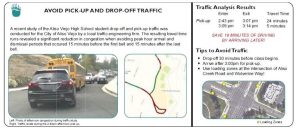For Aliso Niguel High School, avoid peak arrival and dismissal periods and consider using the loading zones at the intersection of Aliso Creek Road & Wolverine Way.