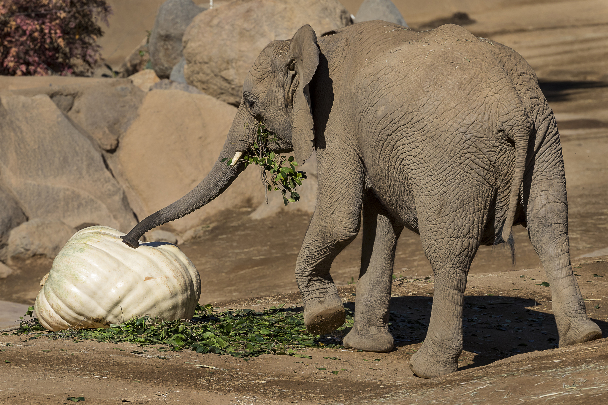 elephant eating pumpkin