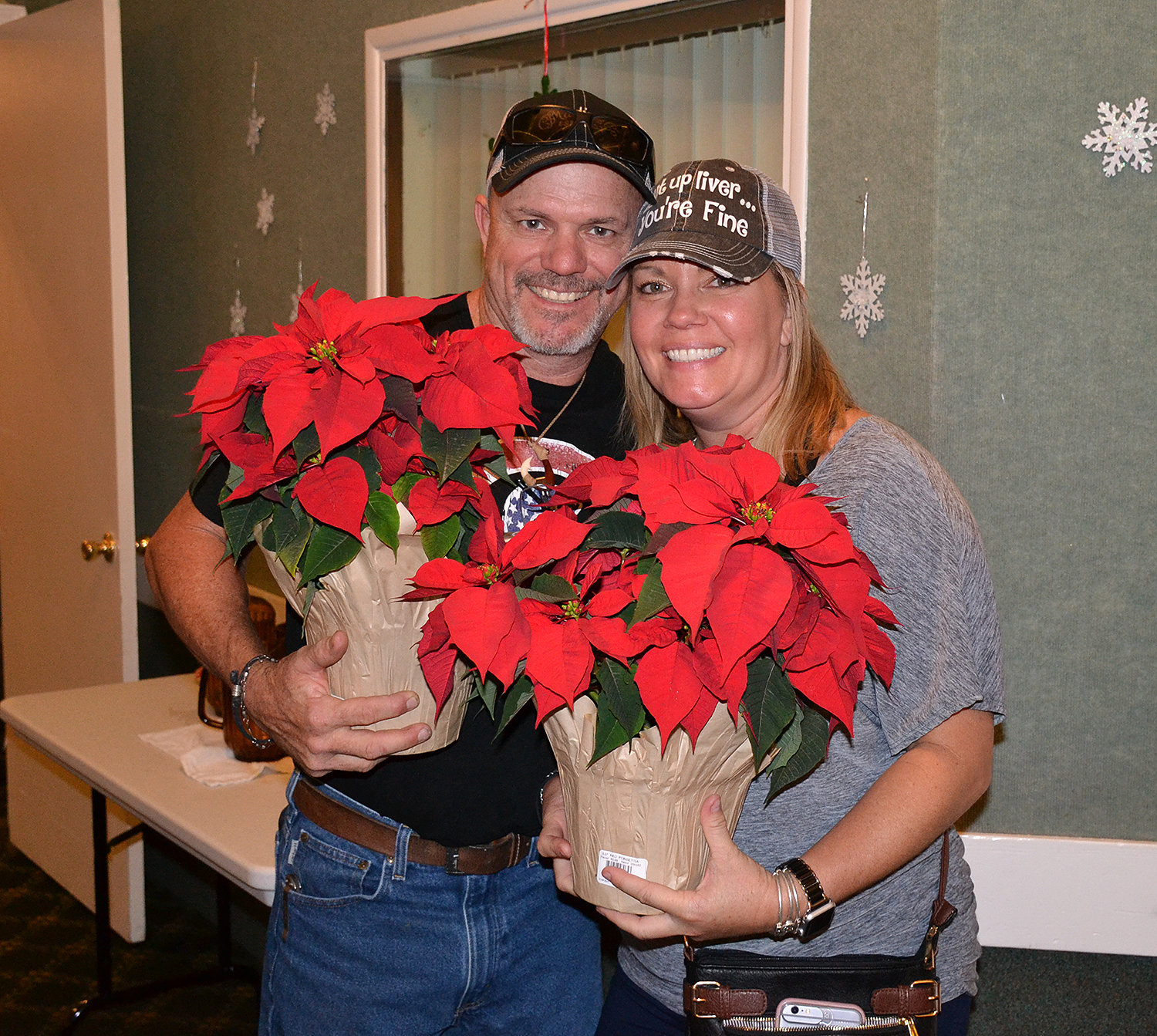 New Elks candidates, Steve and Lorri Steele won matching Poinsettias