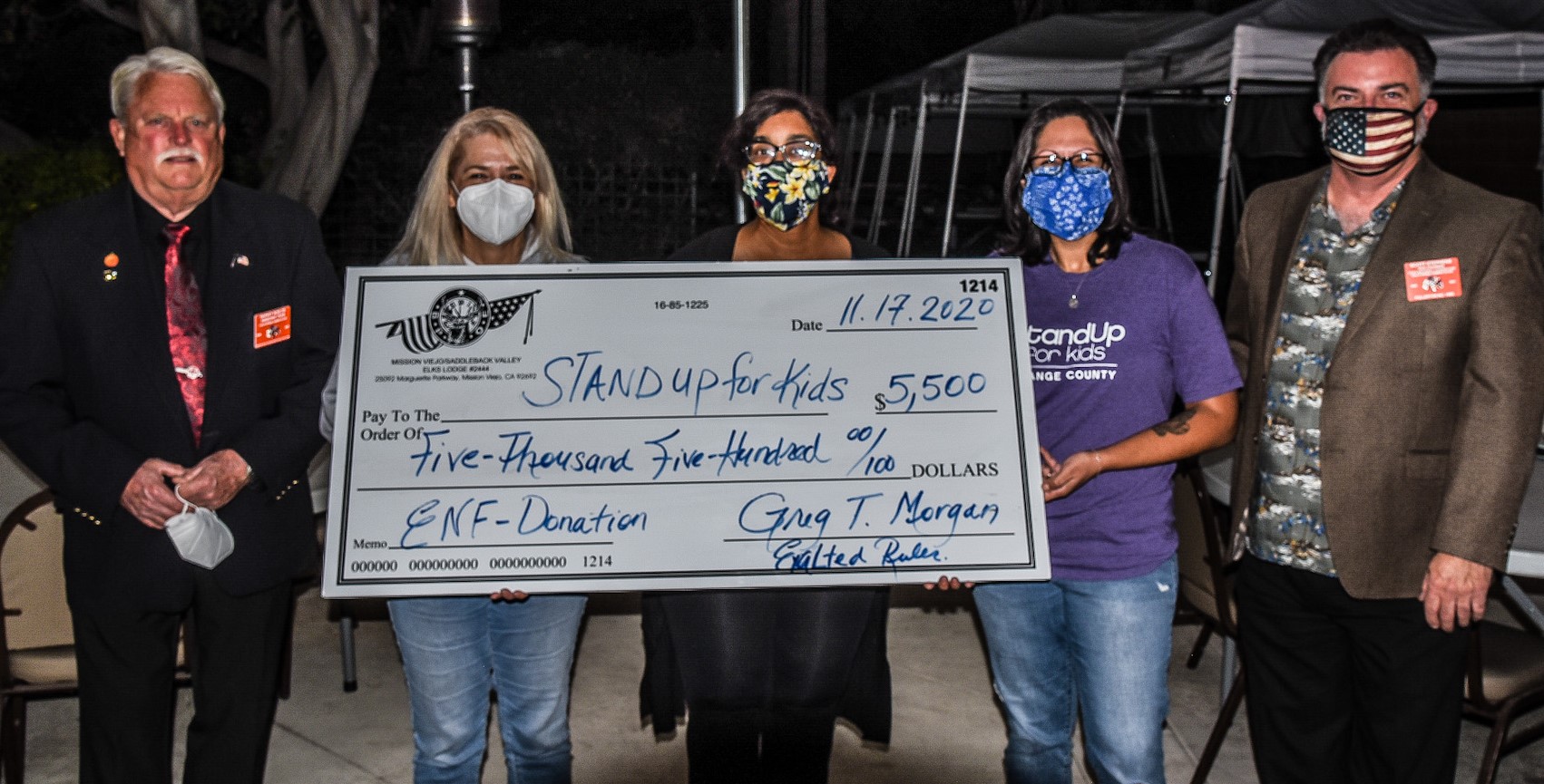 Mission Viejo/Saddleback Valley Elks Lodge #2444 applied for a “super-sized” grant from the ENF.  This grant was awarded from The Spotlight Grant and Beacon Grant – these were combined to be able to donate $5500 to “Stand up for Kids”.  “Stand up for Kids” is a non-profit organization whose mission is to end the cycle of youth homelessness in our community.  All of their programs assist youth between the ages of 18-24 and have the goal of guiding homeless youth to self-sufficiency and preventing at-risk youth involvement.