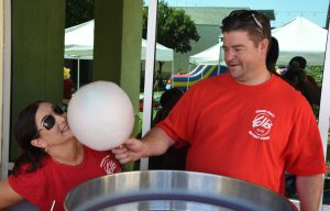 Elks Loyal Knight Stuart Urquhart shows wife Marcie how to make the perfect cotton-candy