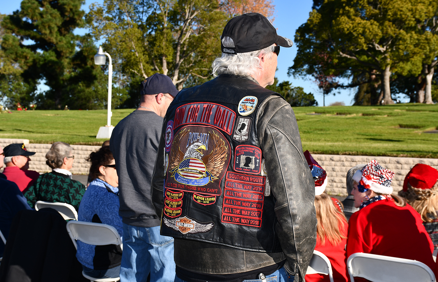 Over 2,000 donated wreaths were located throughout the Memorial Park awaiting placement on grave sites by visitors, first stating the fallen veteran’s me followed by a salute if so required.