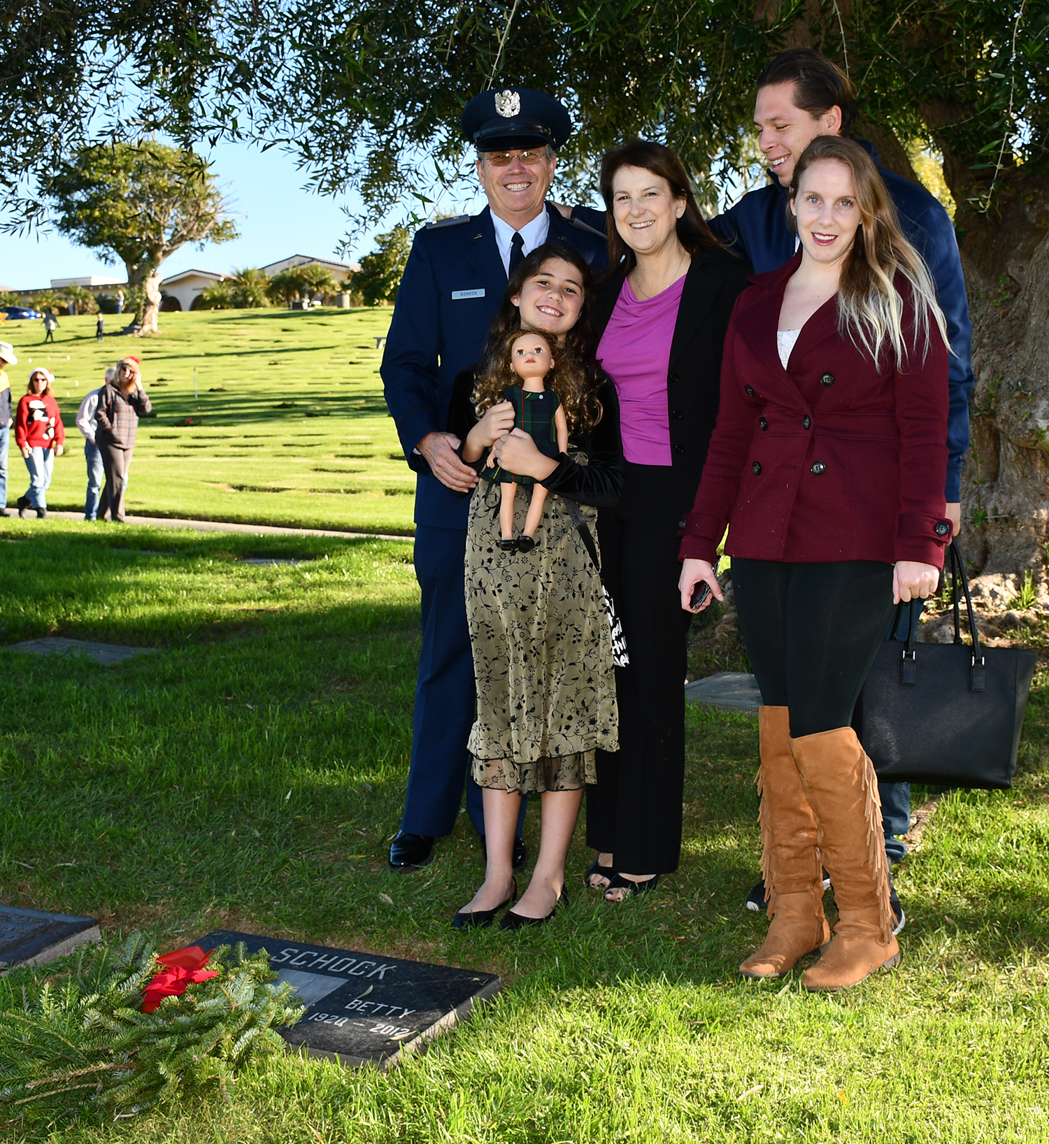 Air Force Reserve, Steve Schock, with his family Ruth, Allison, Catherine and Christian Campoy visit Steve’s mom and dad’s final resting place