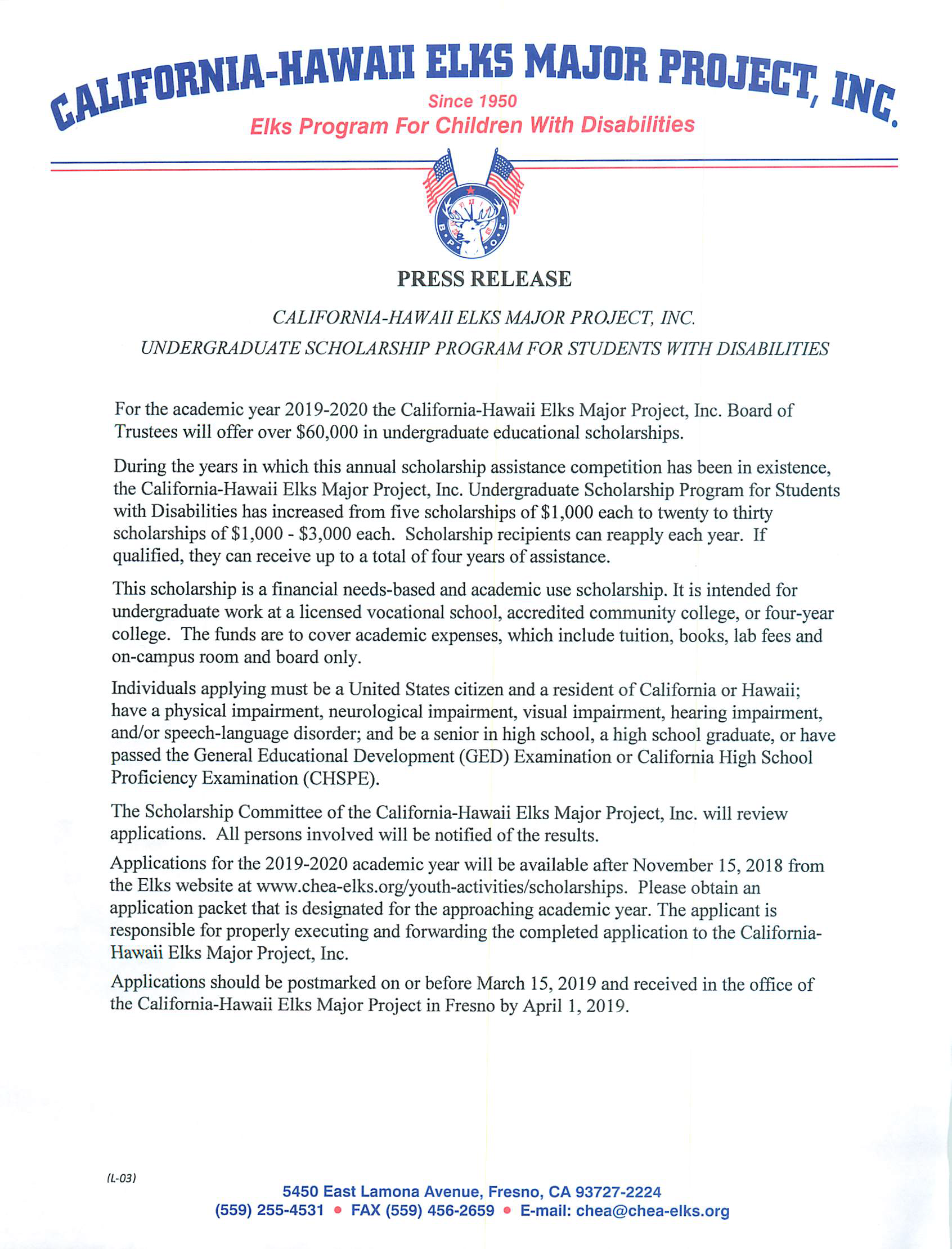 The Mission Viejo–Saddleback Valley Elks Lodge #2444 proudly announces...
