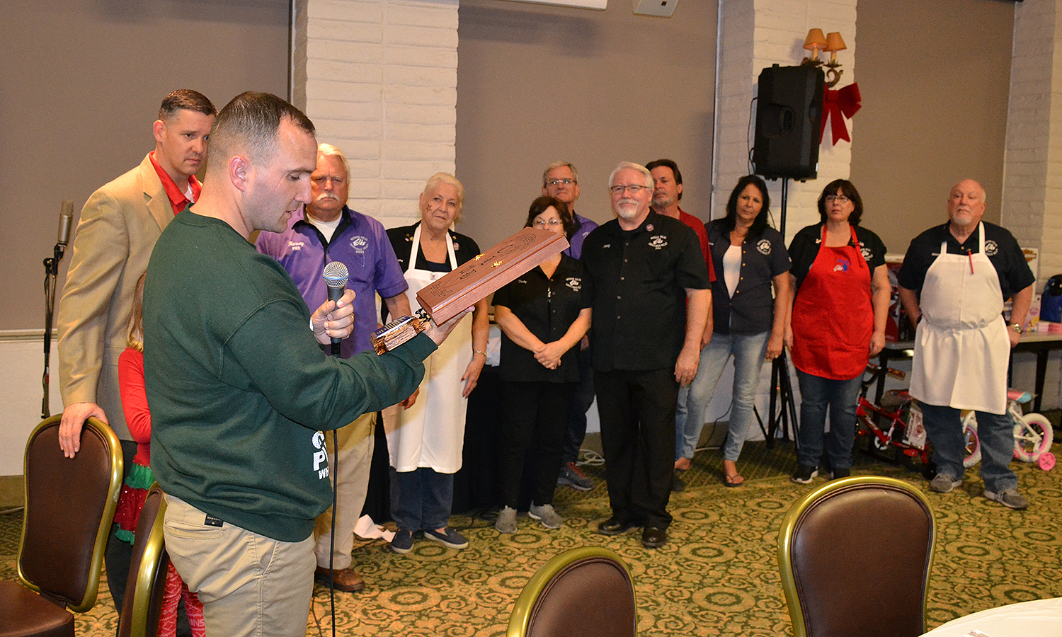 Thompson then presented PDDGER Harvey Boelts and ER Mike Long with a beautiful hand-carved plaque, remembrance of the Elks efforts. Both Harvey Boelts and Mike Long spoke from the heart to the crowd and paid tribute to the Marines and their families for everything THEY do to keep us safe. Mike Long finished with, “Now we cannot wait for the next phone call from the base to return and serve these wonderful people as they continue to serve us worldwide”.