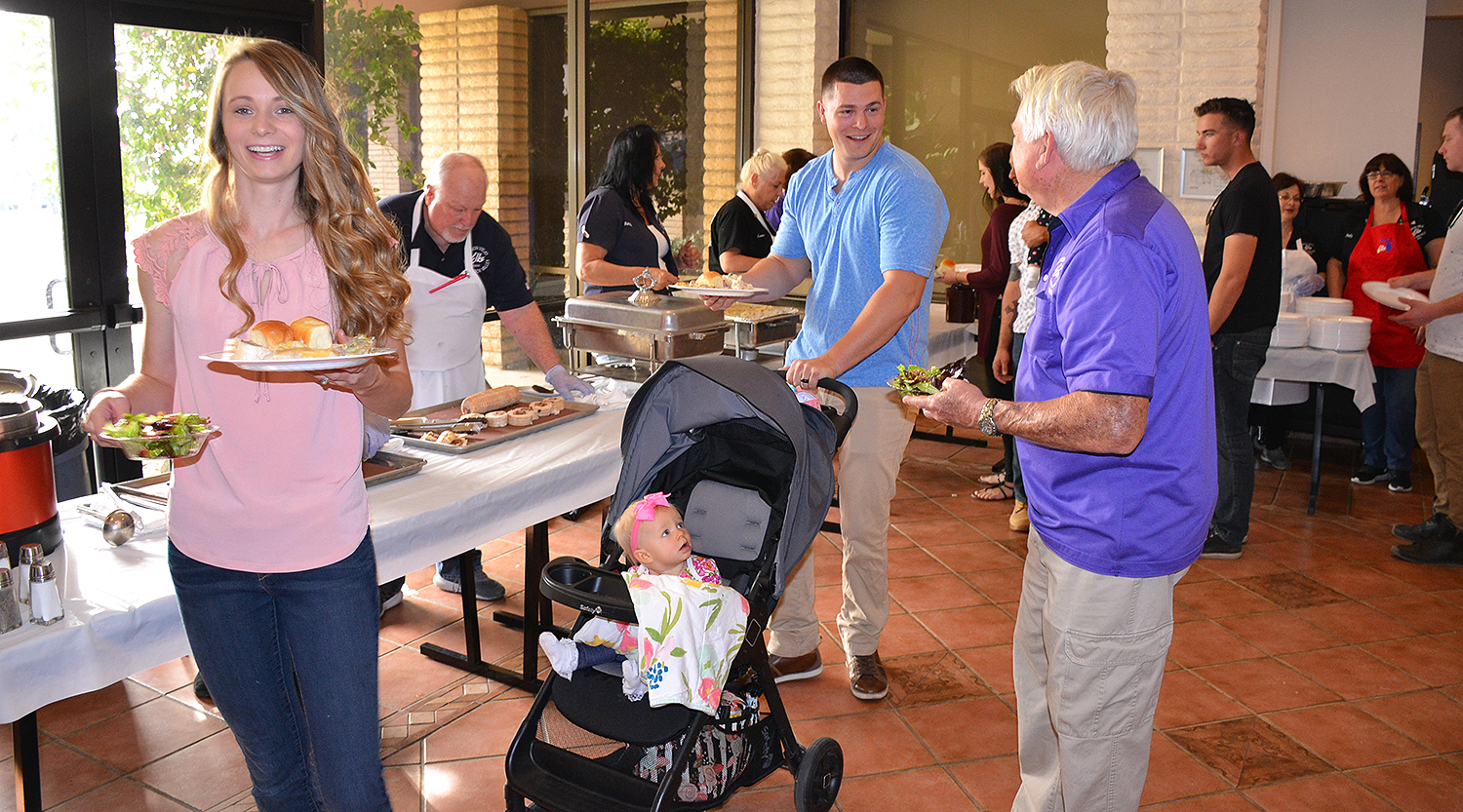 Past District Deputy Grand Exalted Ruler, Harvey Boelts, helps a Marine’s family thru the serving line