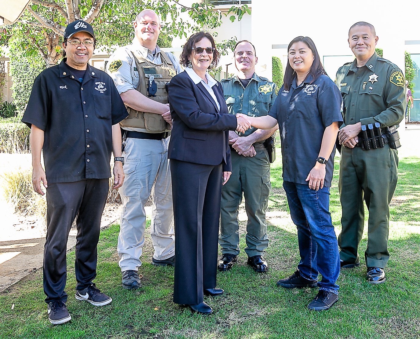 (from left) Leading Knight Rick Moscoso, Community Service Officer Nick Rickers, Director of Community Relations Sharon Genton, Sergeant Josh Brass, 5-Year Lodge Trustee Andrea Pham, and Captain Quyen Vuong.