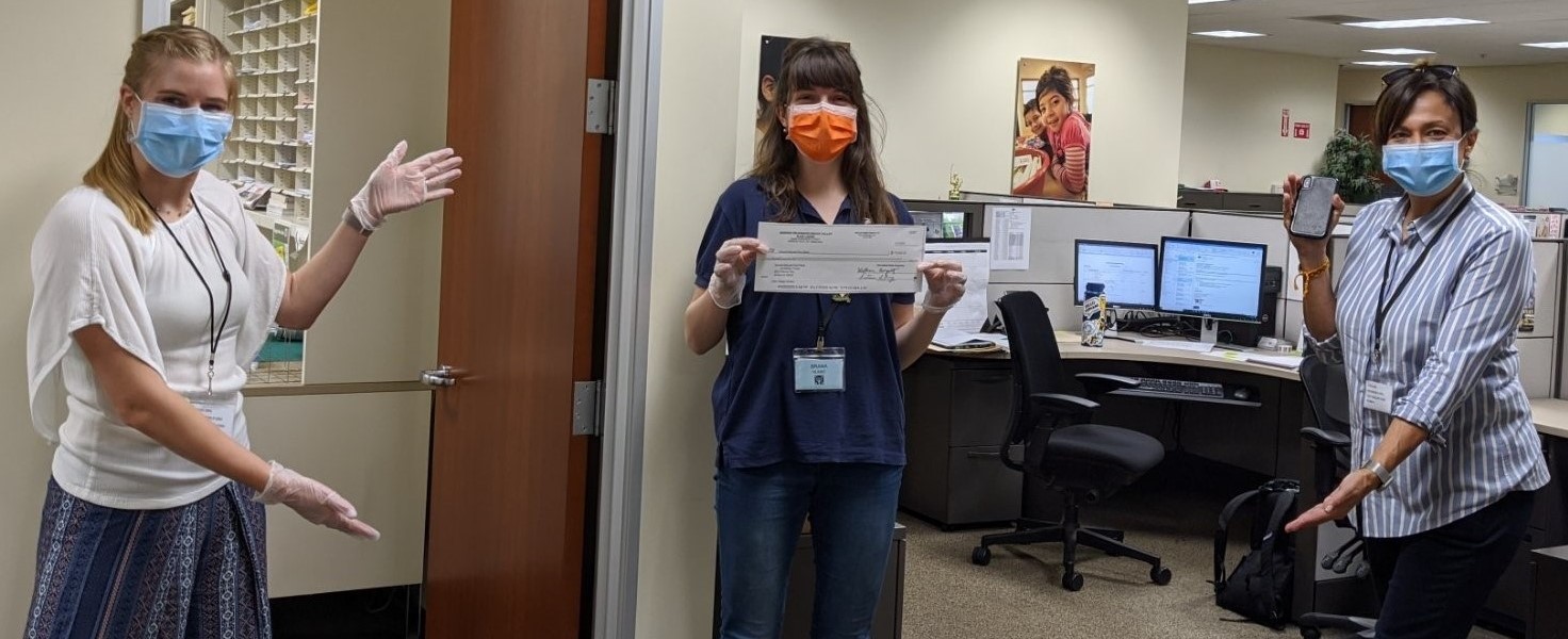Second Harvest Donor Relations Associate Megan Hunker and her team happily display check from Elks
