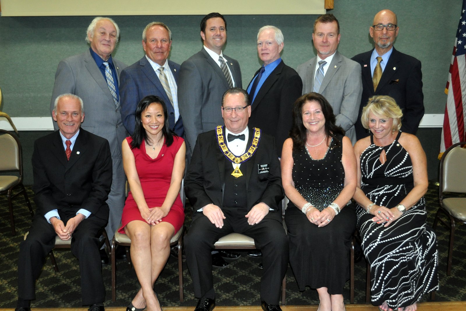 New members seated L to R: William Galloway, Thanh Huynh, Exalter Ruler Mike Klinger, Patricia McCauley, and Brenda Hanrath.
