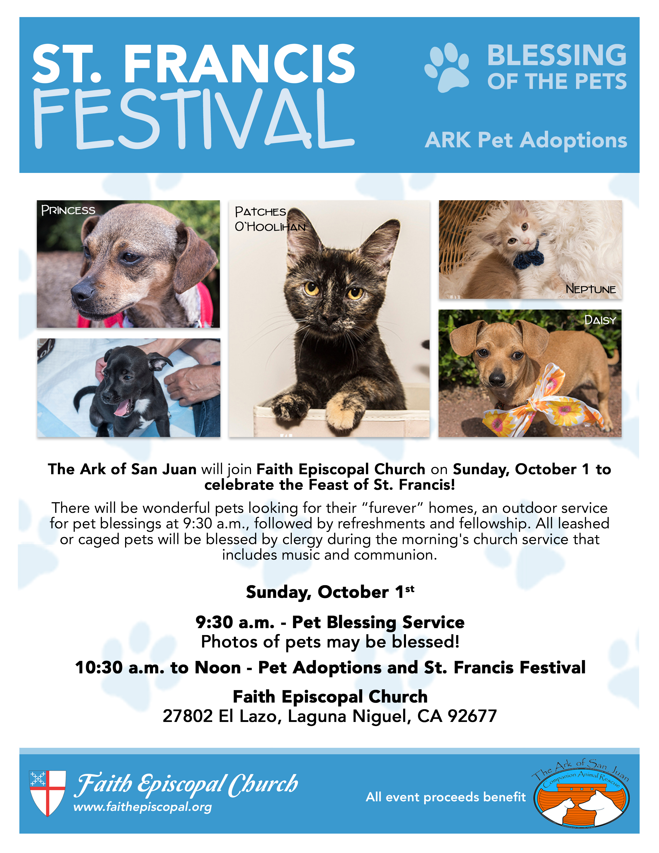 CharitableReligionsWelcome Faith Episcopal Church with The Ark of San Juan – Pet Blessing and Community Pet Adoption event By: Susan Keysor Espenschied Date: September 22, 2017 Previous articleLAGUNA PLAYHOUSE and LYTHGOE FAMILY PANTO ANNOUNCE A VERY SPECIAL HOLIDAY EVENT!Next articleJazz Studies at Saddleback College – Jazz Guest Artist Dave Ambrosio/Russ Meissner Quartet Susan Keysor Espenschiedhttps://alisolagunanews.whatisyourverse.com LEAVE A REPLY Cancel reply Comment: Please enter your comment! Name:* Please enter your name here Email:* You have entered an incorrect email address! Please enter your email address here Website: Save my name, email, and website in this browser for the next time I comment. Look! Drink, Mommy! Marketing Help Free Bible Local Sponsors Popular Dana Point Harbor Partners Presents Happy Harbor Days Featuring the 50th Annual Boat Parade of Lights and More Holiday Favorites “The Fairest of Them All” is returning to Laguna Beach beginning Saturday, December 6 at the Laguna Playhouse! July Brings 8 New Members into the Club 3-Day BBQ Music Festival, Carnival in Mission Viejo this weekend features military and presale online discounts Laguna Art Museum Presents Silence and Solitude: Conrad Buff and The Landscapes of the American Southwest More like thisRelated Dana Point Harbor Partners Presents Happy Harbor Days Featuring the 50th Annual Boat Parade of Lights and More Holiday Favorites Editor - November 14, 2025 Experience the Magic of the Holidays at Dana Point Harbor Dana Point Harbor Partners (DPHP) is... “The Fairest of Them All” is returning to Laguna Beach beginning Saturday, December 6 at the Laguna Playhouse! Editor - November 10, 2025 CELEBRATING 10 YEARS OF PANTO! LAGUNA PLAYHOUSE presents A NEWLY REVISED... July Brings 8 New Members into the Club Editor - August 3, 2025 The Mission Viejo-Saddleback Valley Elks Lodge #2444 located in... 3-Day BBQ Music Festival, Carnival in Mission Viejo this weekend features military and presale online discounts Editor - July 25, 2025 3-Day BBQ Music Festival, Carnival in Mission Viejo this...