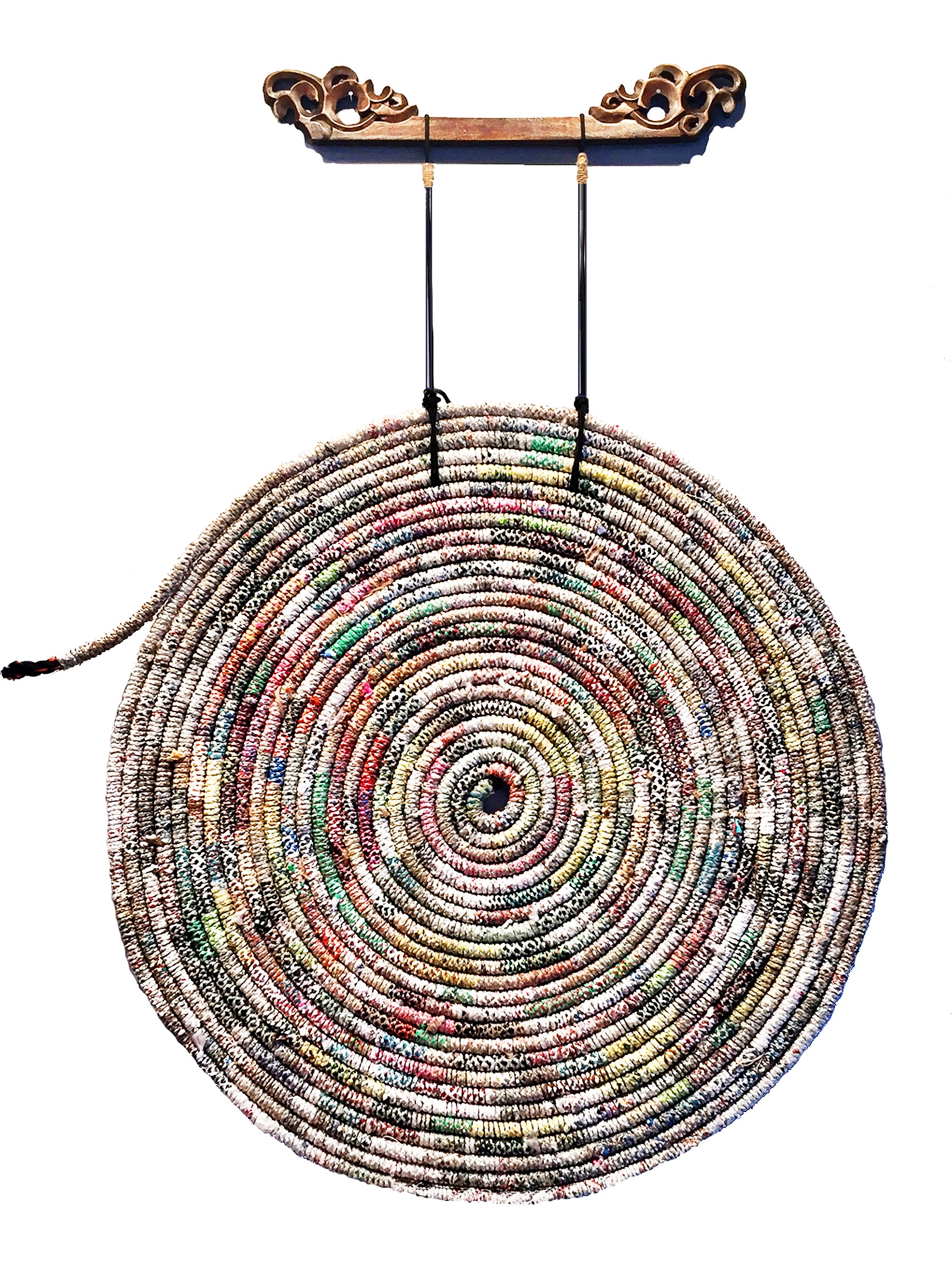 Mariana Nelson was born and raised in Southern California. She grew up in Newport Beach and moved to San Francisco in her early 20’s. In San Francisco she became involved in a thriving and inspired art community where she found her focus on reusing existing materials. After years of wrapping and practice she soon developed a pattern and way to wrap that was unique to her. Anything from lint and dog hair to found plastic and paper was wrapped with bright and colorful fiber, transforming literal trash into something completely unrecognizable. She has moved back to Orange County where she has exhibited her artwork at the Festival of Arts for three years.