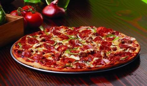 (Thin Crust Da Works pizza loaded with sausage, pepperoni, mushrooms, green peppers and red onions!!!)