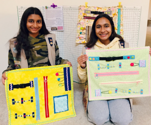 Senior Girl Scouts Aminah & Saarah (sisters) of Troop 3162 completed their service award project during their spring break at home. They made therapy mats for hospice patients, which help patients with arthritis & Alzheimer’s.
