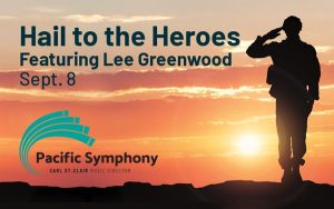 Pacific Symphony will be honoring these courageous men and women at “Hail to the Heroes,” a special concert on Sept. 8 at Pacific Amphitheatre featuring country music icon Lee Greenwood. We hope you will join us as we pay tribute to the veterans and active military in our own Orange County community.