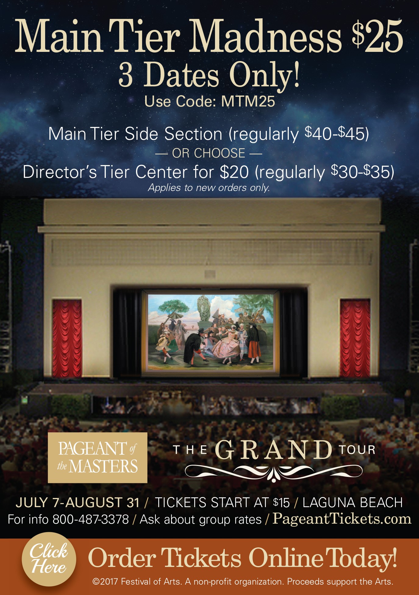 Your Pageant ticket to THE GRAND TOUR becomes your passport to experience spectacle, music, stories and grand illusions as masterpieces come to life. Book your passage now for this breathtaking theatrical journey through the centuries in search of unforgettable art.