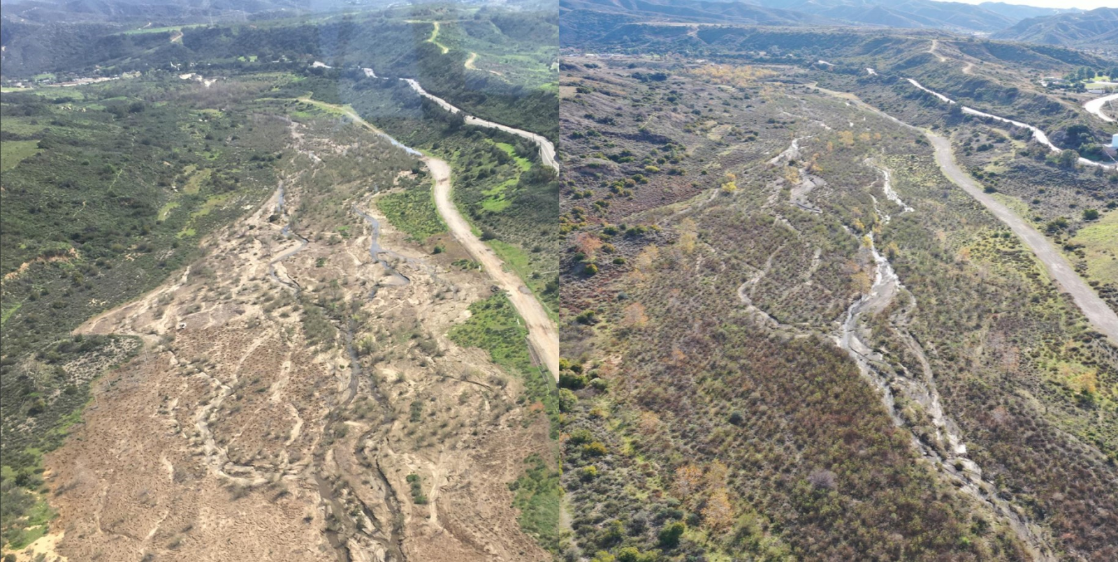 Before/After Aerial Photos from OCTA Silverado Restoration Project Site. Photos courtesy of Irvine Ranch Conservancy.