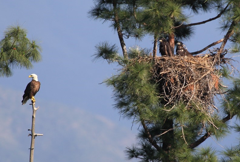 Once volunteers are trained and have received an assigned nest, they begin the monitoring visits and conduct surveys by foot using binoculars or spotting scopes. The volunteers complete a form during each visit, noting their name, date, nest ID, visitation number, time spent observing the nest, the raptor species, rearing behavior, number of chicks, and any additional notes that are helpful for the Conservancy staff to document.
