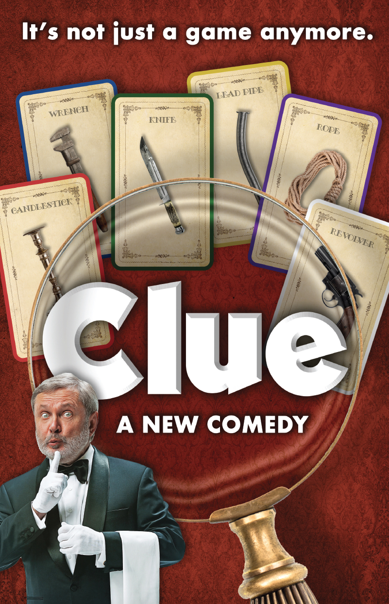 The Design Team for CLUE is as follows: Scenic Design by Lee Savage; Lighting Design by Steven Young; Sound Design by Cricket S. Myers, based on original sound design by Jeff Human; Costume Design by Jen Caprio; Hair/Wig/Makeup Design by Kaitlin McCoy; Properties Design is by Kevin Williams. Scenery and Props provided by Clue On Stage, LLC. Costumes provided by Cleveland Playhouse and Clue On Stage, LLC