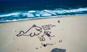 To celebrate Kids Ocean Day on May 21, more than 1,350 students from underserved schools across Orange County spent the day putting their passion into action by removing trash from the sand at Huntington State Beach. Afterward, the group had their photo taken from hundreds of feet above as they gathered to form a unique whale design shape and the event’s slogan, “Protect What You Love.”