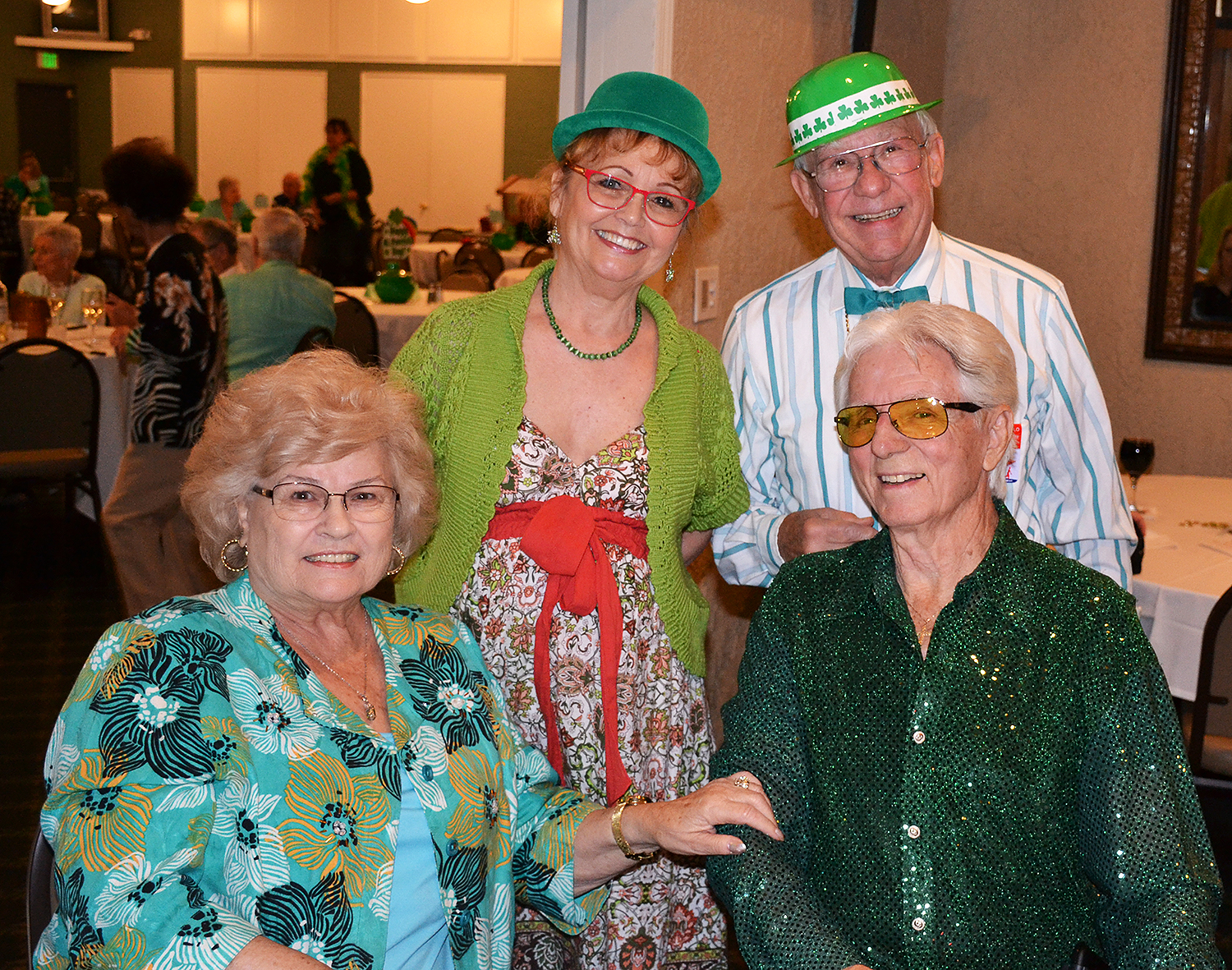 Ellie and Jim Humphrey PER with (standing) Gail Reavis, former Mission Viejo Mayor and Andy Costello, Grand Lodge Area 7 Public Relations and Marketing Committeeman enjoy the St. Patrick’s Day party at the Mission Viejo Elks