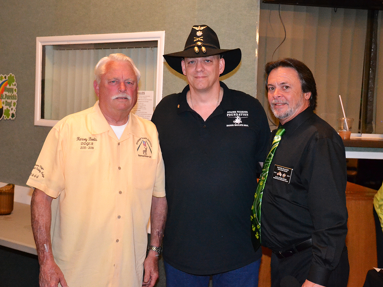 (L to R) Harvey Boelts Past District Deputy, Lt. Col Allen Hahn, and Exalted Ruler Dave McLeod