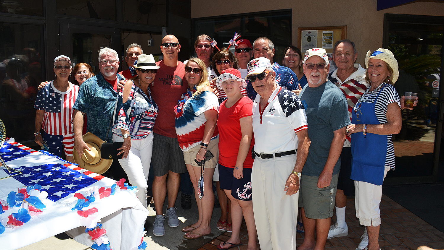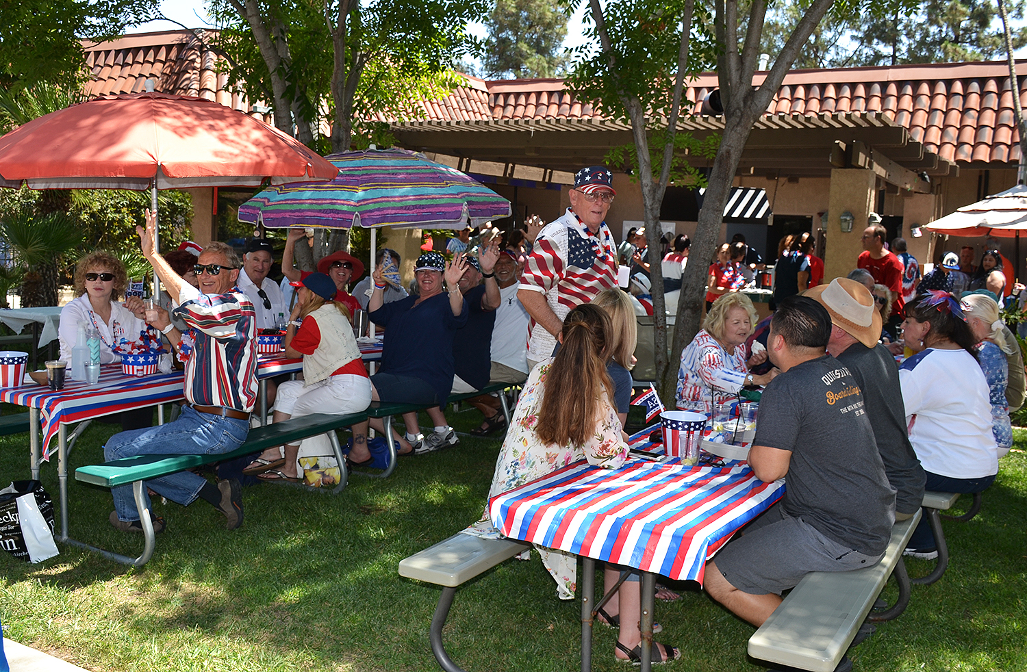 Parade over, and the Elks members retreated to the comfort of the Elks Lodge and an afternoon BBQ for members and guests. The Lodge patio was colorfully decorated in red white and blue honoring our country’s birthday. Members had a hard time choosing between the comforts of the air conditioned Lodge building and the fun on the backyard patio where the Rock of Ages Band performed.