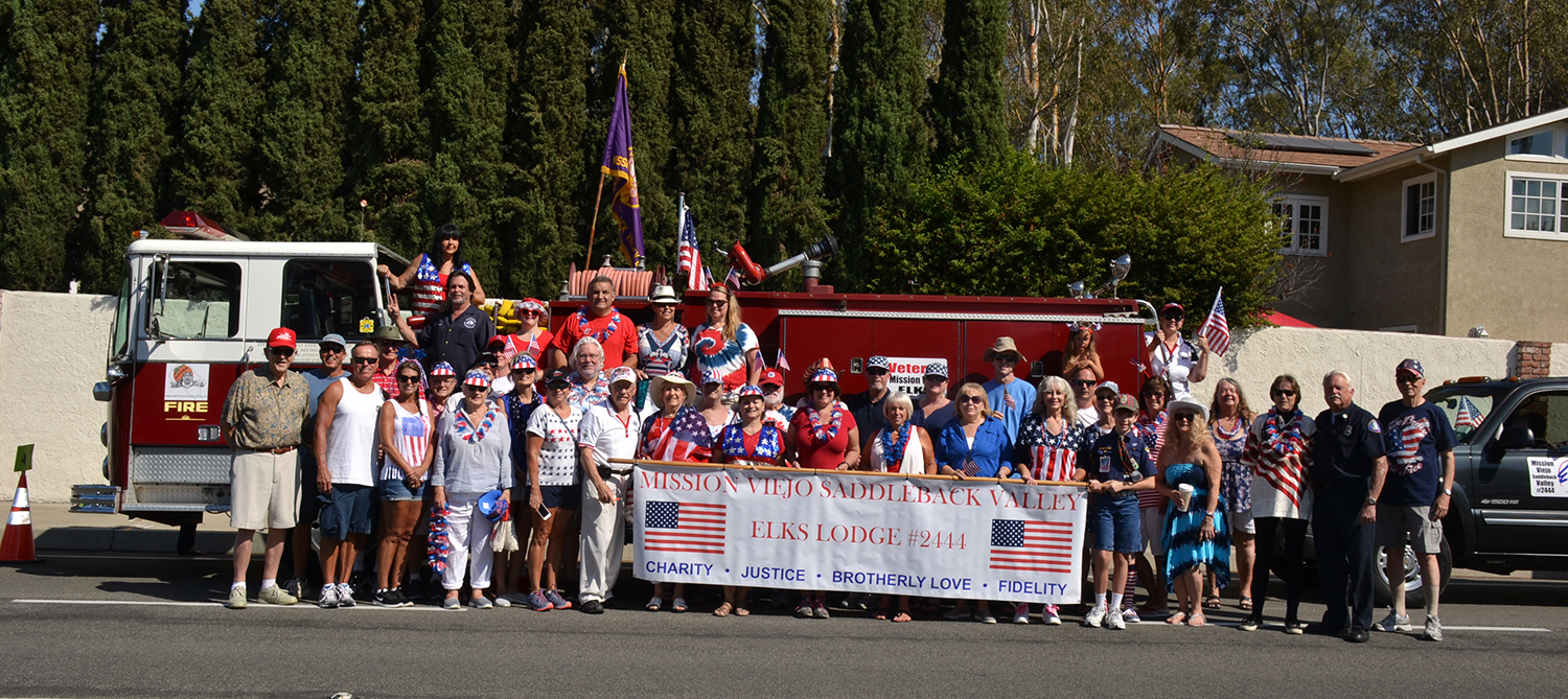 The Mission Viejo / Saddleback Valley Elks #2444 Elks participated in the City of Lake Forest July 4th Parade “Let Freedom Ring” for the seventh year. Over eighty members and guests gathered in the Summer heat to represent the local Saddleback Valley area Lodge. As the Elks began to line-up and prepare for the start, event promoters mentioned to Elks event Chairman and Lecturing Knight, Dave McLeod PER, that Mission Viejo Elks had the largest participation in the Lake Forest Parade this year. “I would like to thank the City of Lake Forest for supporting the community with the parade every year. The Elks look forward to being involved each year and seeing the thousands and thousands of families lining the streets,” stated Past Lodge President, McLeod.