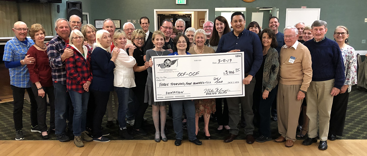 The Mission Viejo Elks have enjoyed a close relationship with OCF-OCF for more than 15 years, donating hundreds of volunteer service hours and thousands of dollars in charitable donations. This was a night of celebration for a season’s worth of fundraising, culminated with the presentation of an Elks check to OCF-OCF for $3,406.25.