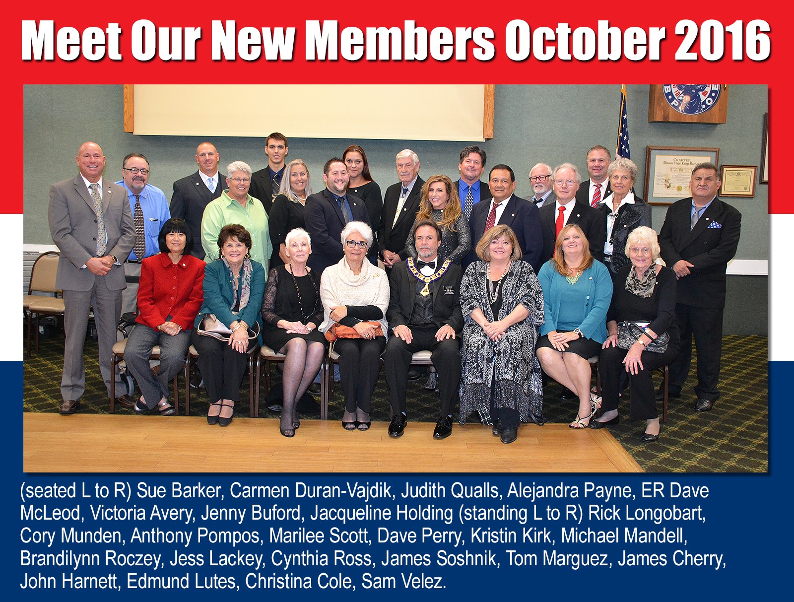Mission Viejo / Saddleback Valley Elks #2444 is proud to announce the initiation of 24 new members for October. The Saddleback Valley is comprised of many cities, but this month we tapped many of those plus more in Orange County region: three new members from Mission Viejo, two from Laguna Hills, two from Aliso Viejo, three from Laguna Niguel, two from Laguna Beach, two from Laguna Woods, two from Rancho Santa Margarita, one from Ladera Ranch, one from Costa Mesa, one from Trabuco Canyon, one from Irvine and one from Camp Pendleton.