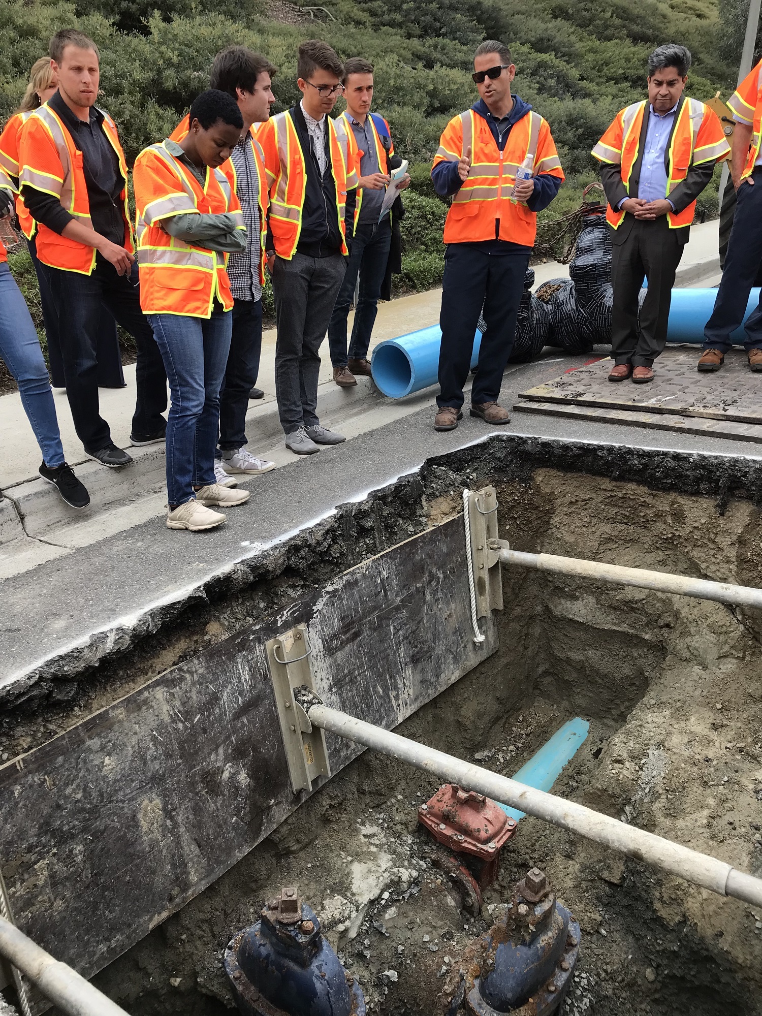 In April 2018, more than a dozen young professionals participating in the prestigious Coro Fellowship program visited Moulton Niguel to learn how the district cost-effectively invests in and maintains its water infrastructure to best serve district ratepayers. The visit also comprised of an up-close look at the water agency’s facilities and operations center, including a site visit to watch a valve replacement job in action and stepping foot inside an above-ground water reservoir tank.