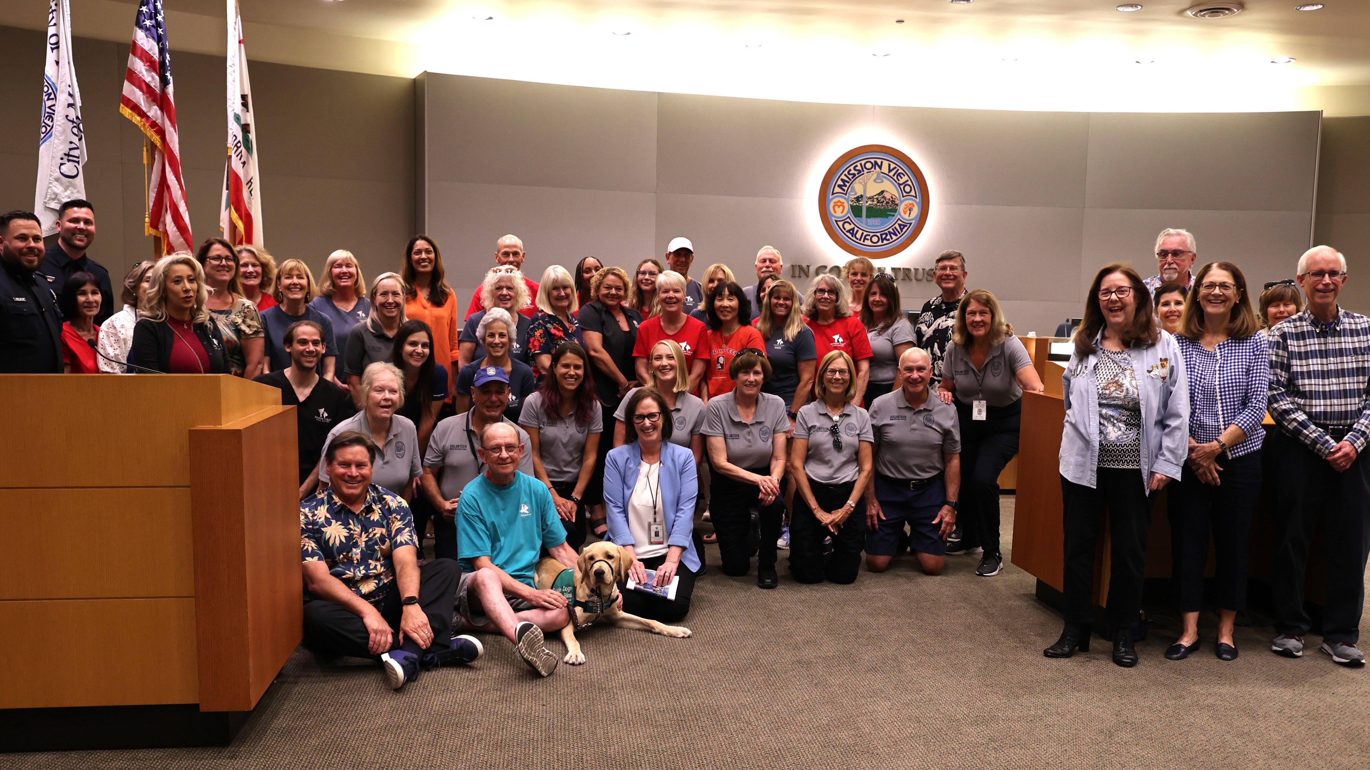 In addition to the Hometown Hero Award, Council Members honored the volunteers who are the lifeblood of the Mission Viejo Animal Services Center. These amazing volunteers are essential to the center’s operations, and the City appreciates their vast contributions.