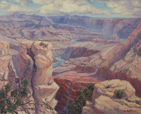 Nellie Gail Moulton was passionate about painting en plein air, with many of her works featuring seascapes and landmarks such as the Mission in San Juan Capistrano and Balboa Park in San Diego. As one of the first female artists on the scene when Laguna Beach attracted a colony of artists, Nellie was a founding member of the Laguna Beach Art Association (which later became Laguna Art Museum) in 1918, and served as their president from 1948-49. Having befriended and trained with fellow notable California artists such as William Wendt, Anna Hills, Frank Cuprien, and Edgar Payne, her work represents her affinity for nature and the California landscape.