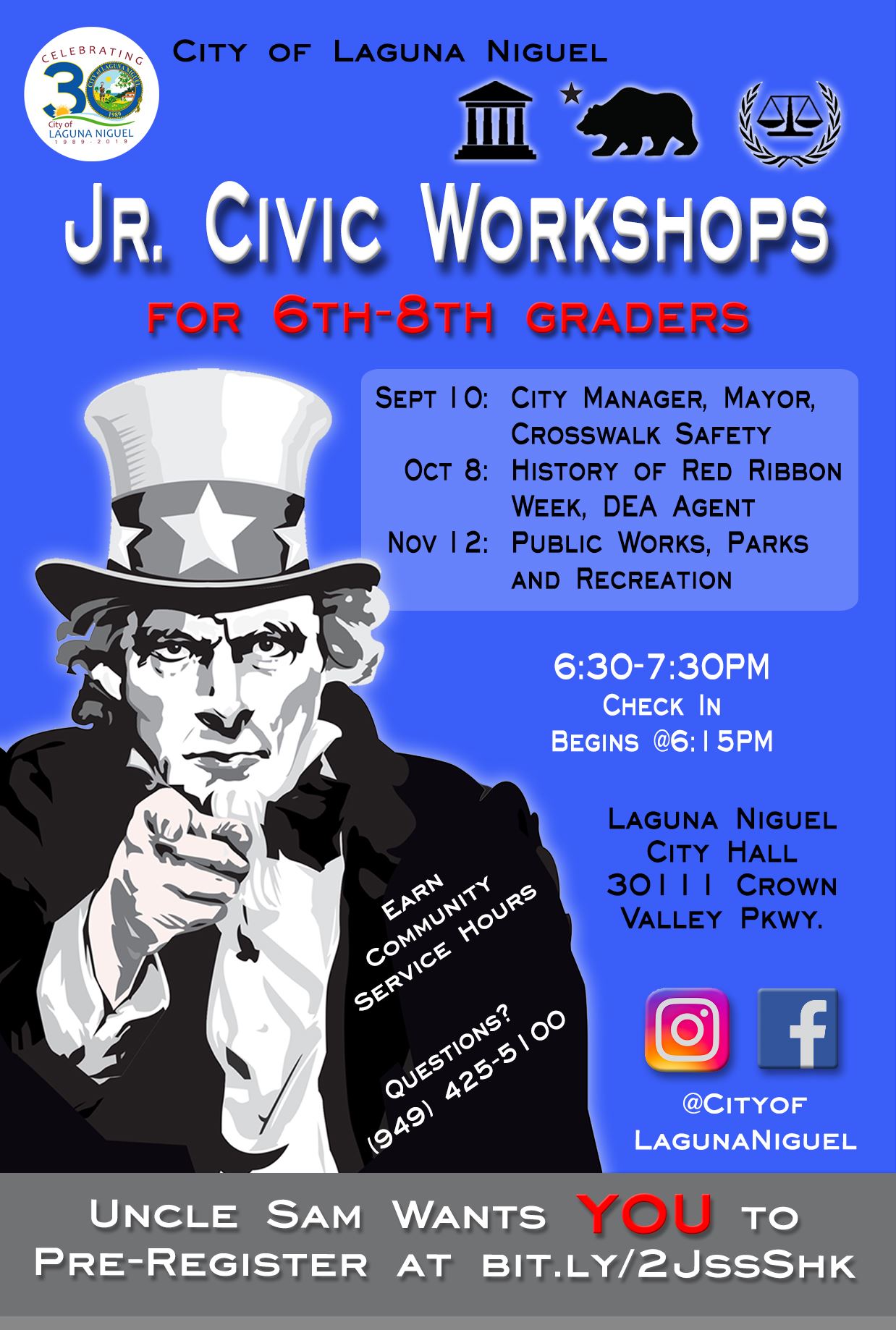 6th to 8th graders are invited to attend free workshops on the second Tuesday of each month, learn about their local government, and receive community service hours. In October, our guest speaker will be a retired Drug Enforcement Administration agent. Please bring a notebook or clipboard to write on, and a pen or pencil. Attendees must register each month.