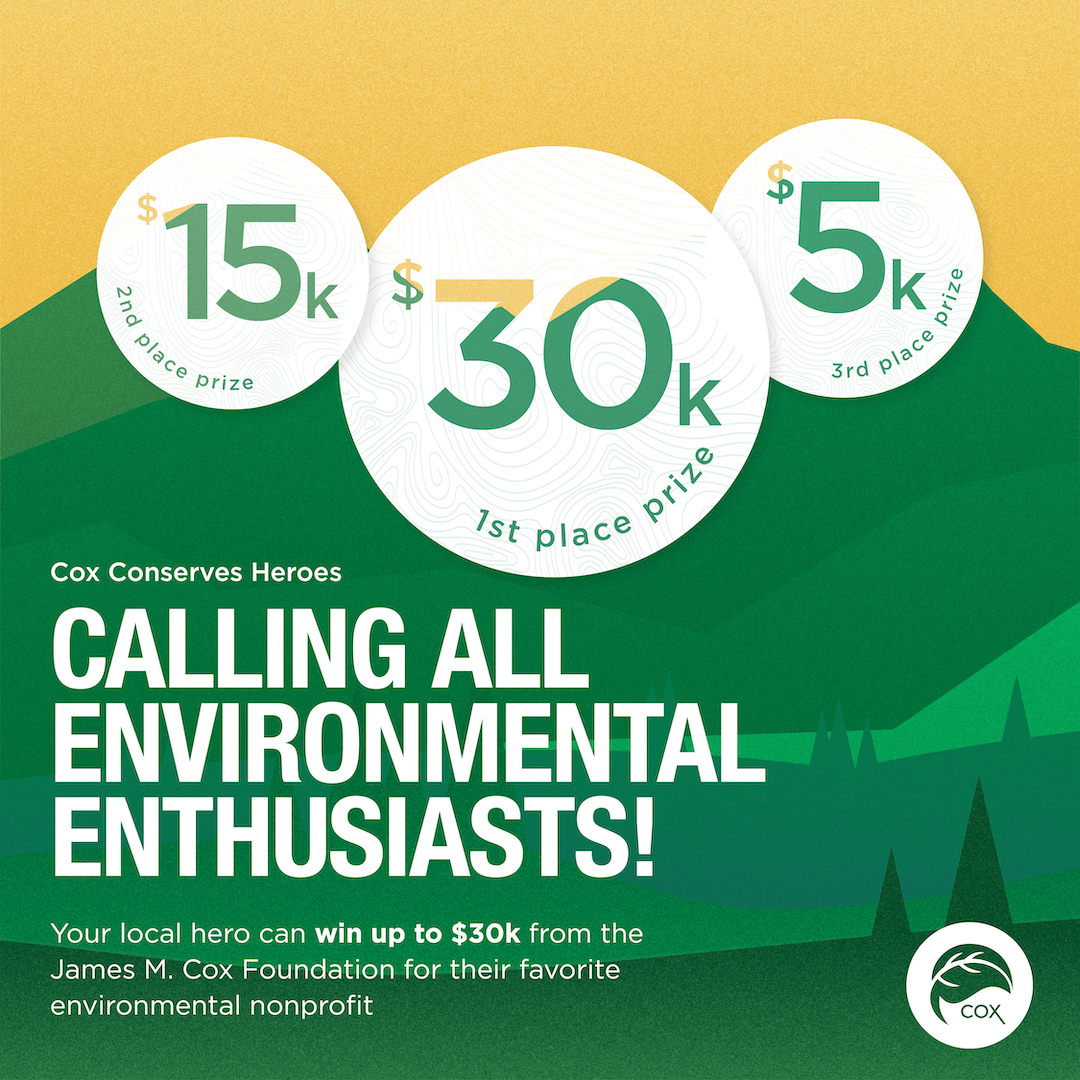 Nominations are now open for the 2023 Cox Conserves Heroes program. Visit CoxConservesHeroes.com between Aug.17-31 to nominate a sustainability superstar and give them a chance to win up to $30,000 for the environmental nonprofit of their choice, courtesy of The James M. Cox Foundation.