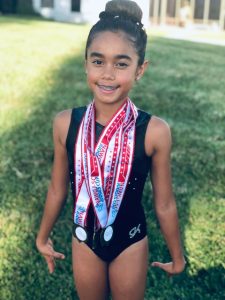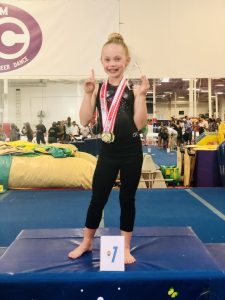 Judges’ Cup All-Around, Floor and Bar Champion in the Senior A division, Reese Larson. (Photo credit: Greg Larson)