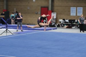 Ladera Ranch’s Sarah Quan performs her Level 9 silver medal floor exercise routine. (Photo credit: Henry Quan)