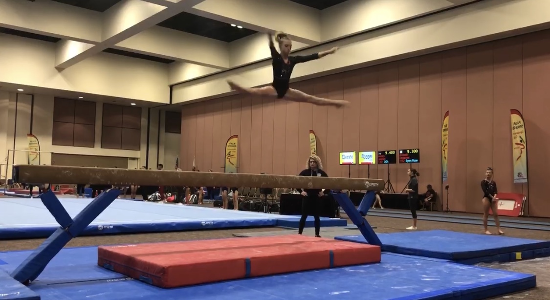 Misha Parsons of Dana Point earned a 9.650 for the gold medal on beam. (Photo credit: Ryan Parsons)